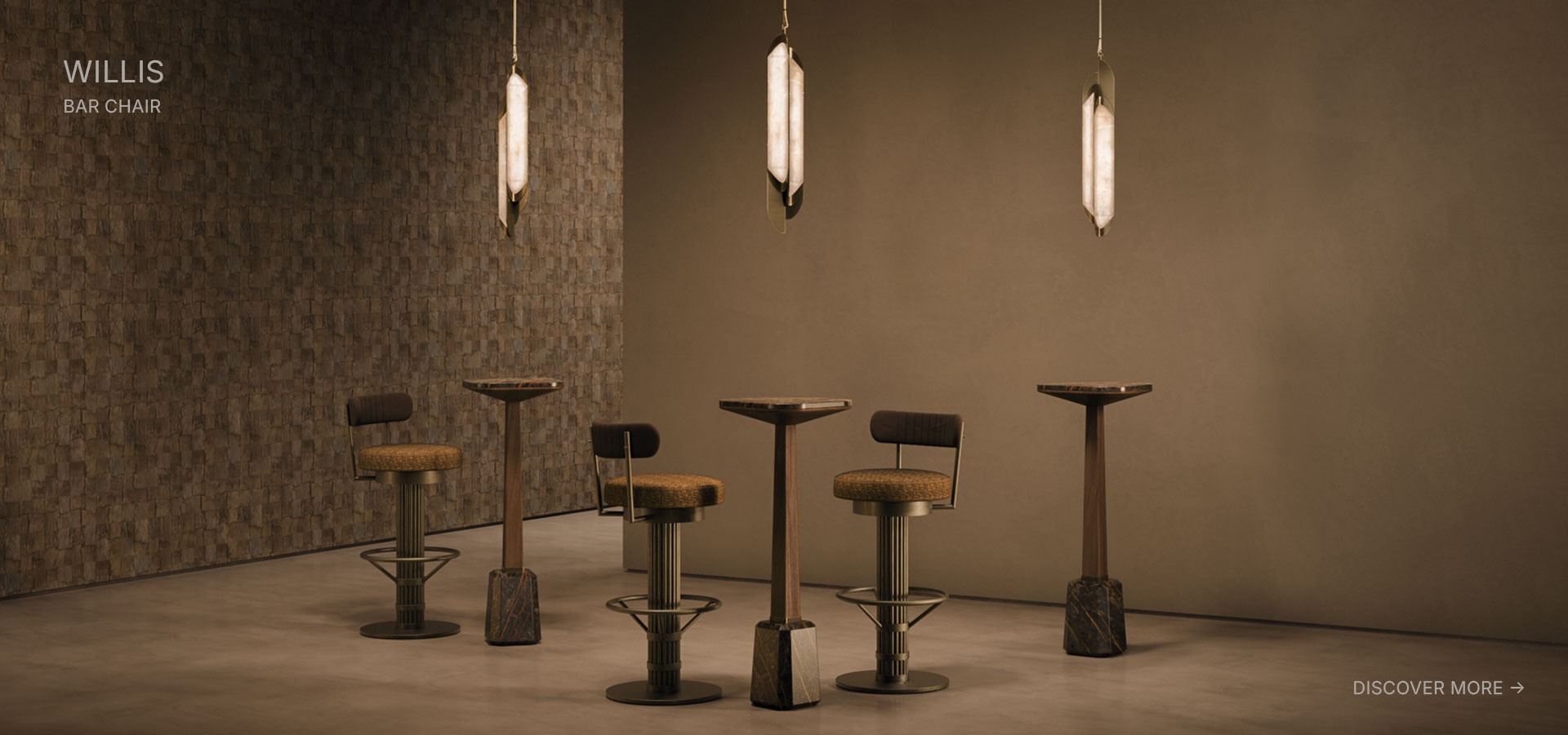 Willis Bar Chair, Glacier I Pendant Lamp and Oakland Bar Table in bar setting