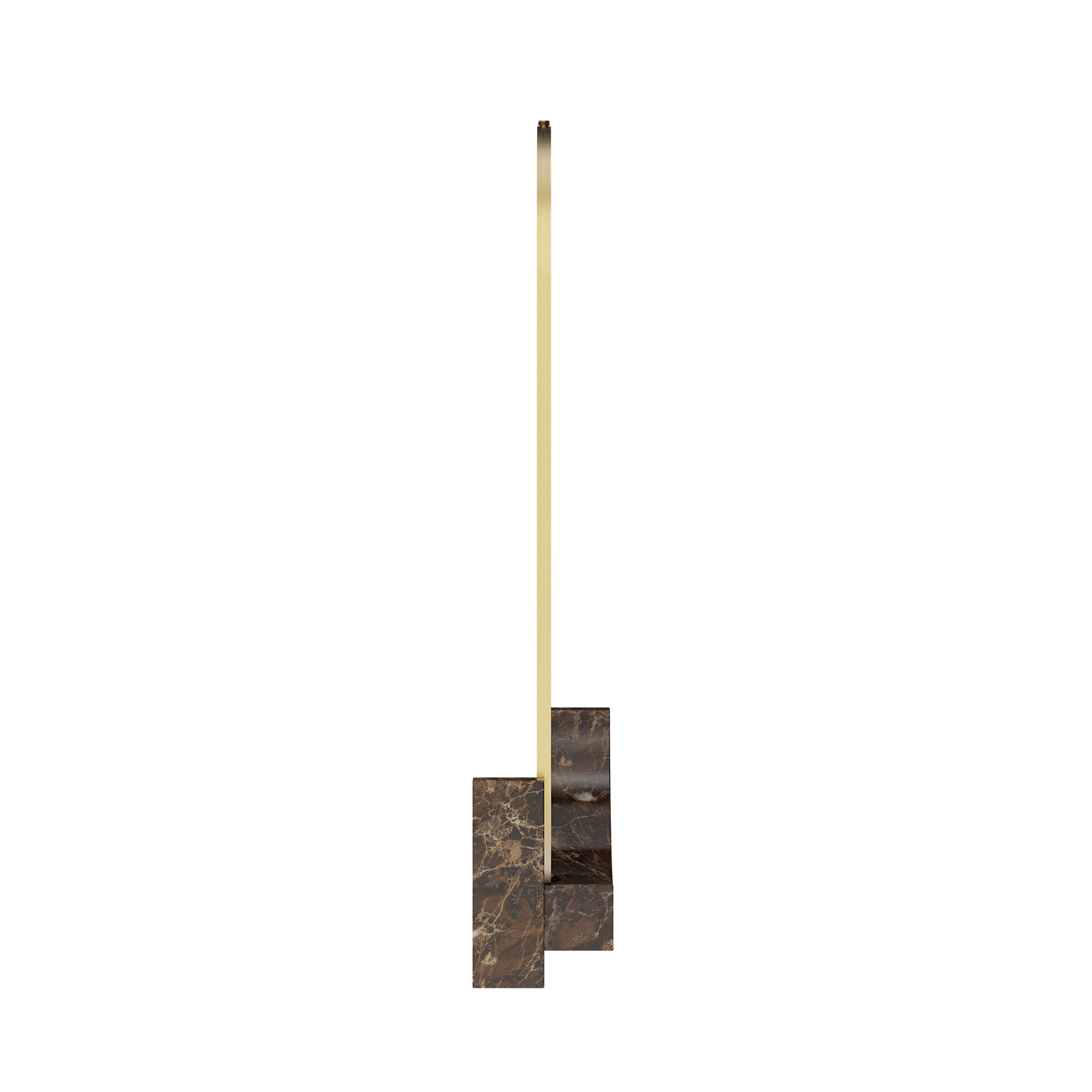 Inspired by this painting-like scenery, the Hidden Floor Mirror features a structure in Emperador Marble and brushed gold steel brass that holds a mirror split in two shades.