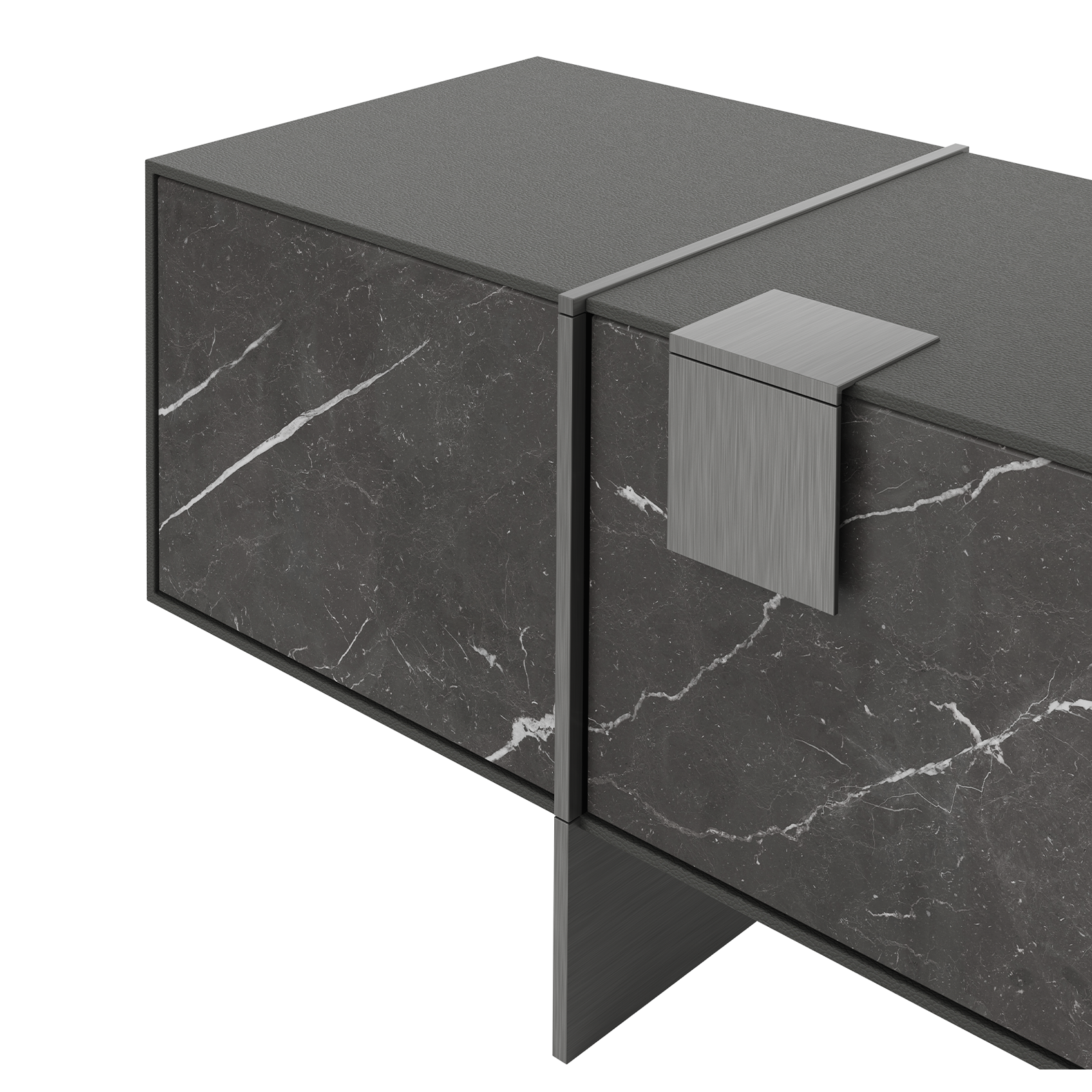 Featuring Brushed Gun Metal details that embrace the Black Stained Ashwood and the Grey Kendzo marble.