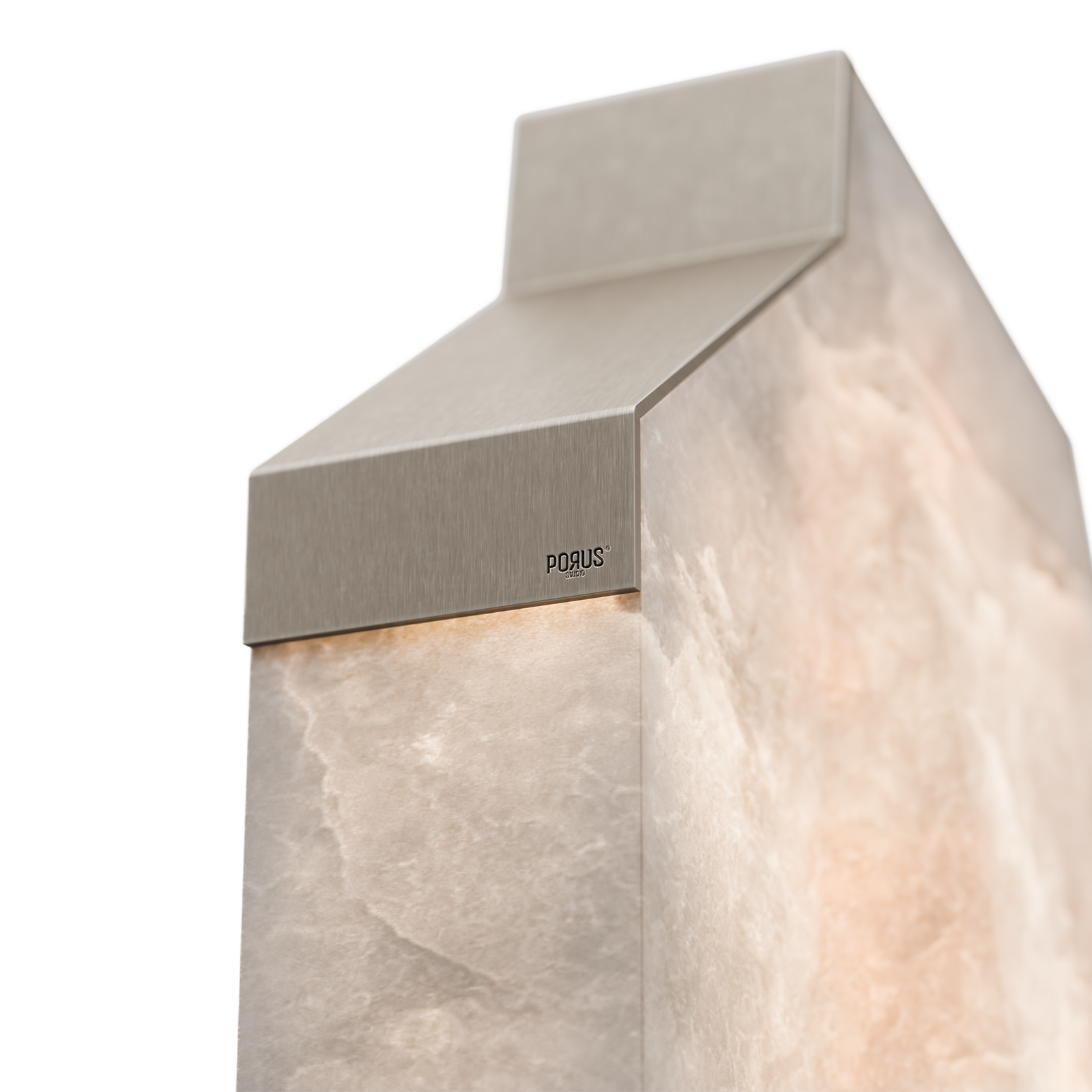 The warm light casts soft shadows when illuminated, evoking the serene sunrise over Denali. The alabaster’s natural translucence of Denali Wall Lamp adds to the overall effect, infusing your space with a sense of natural wonder.