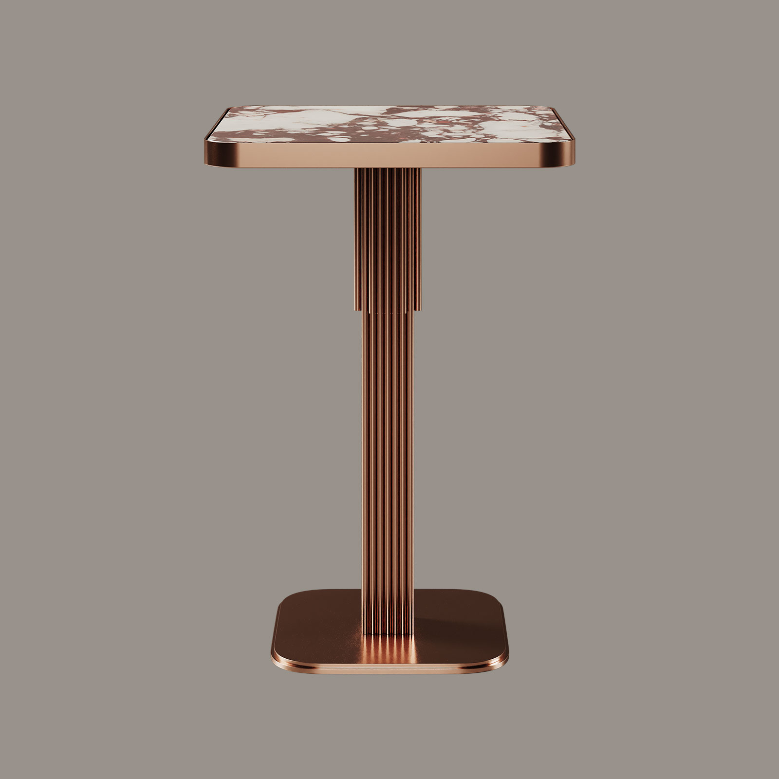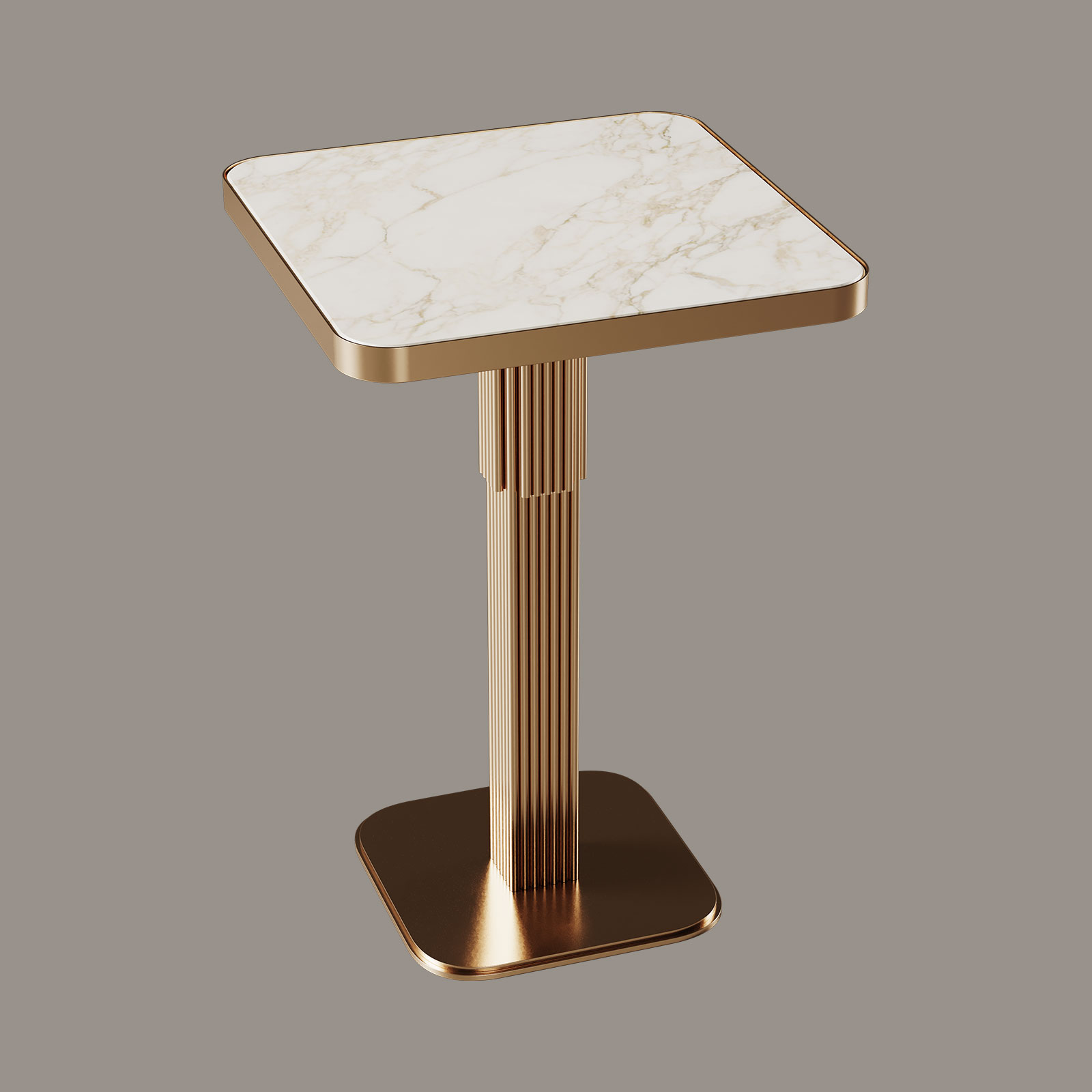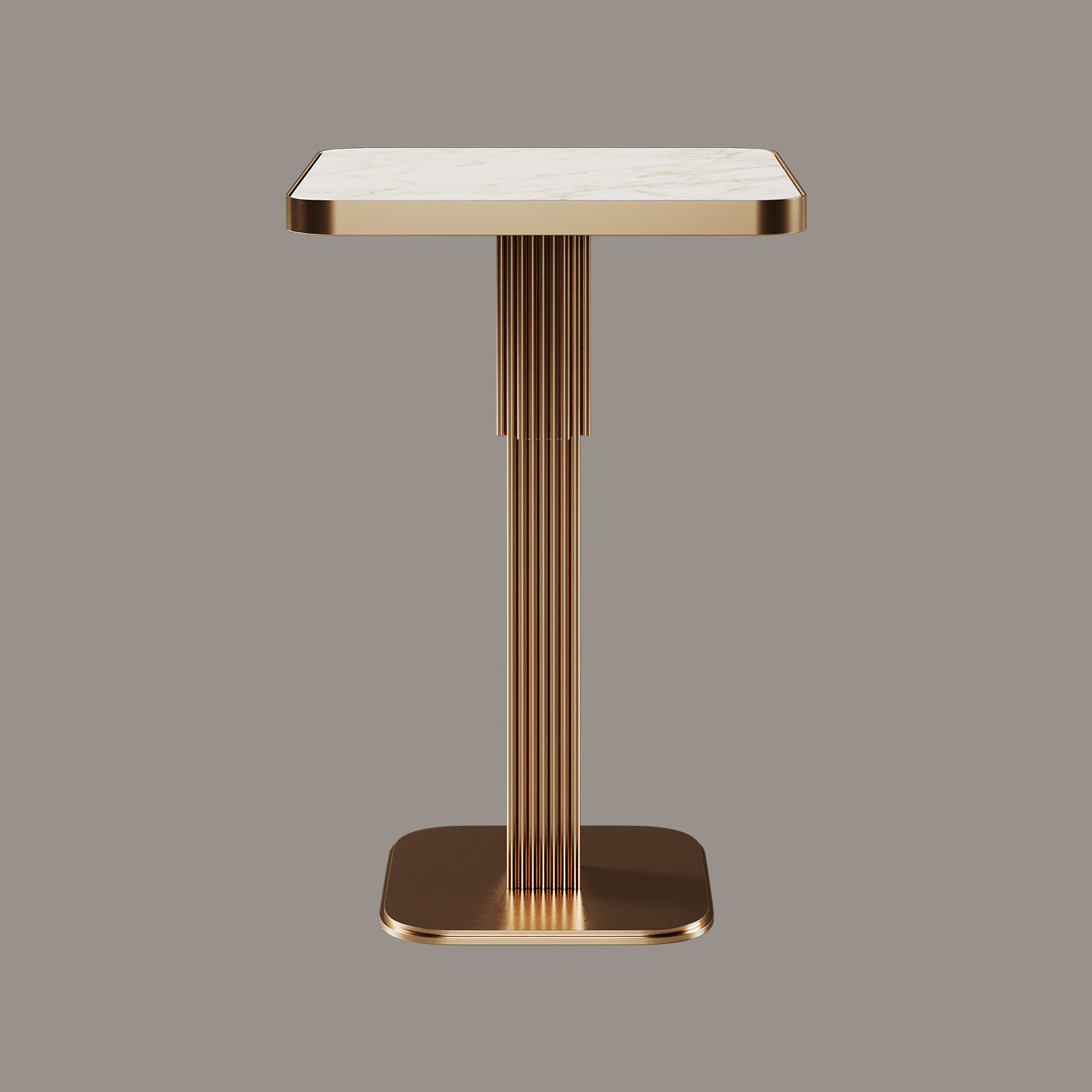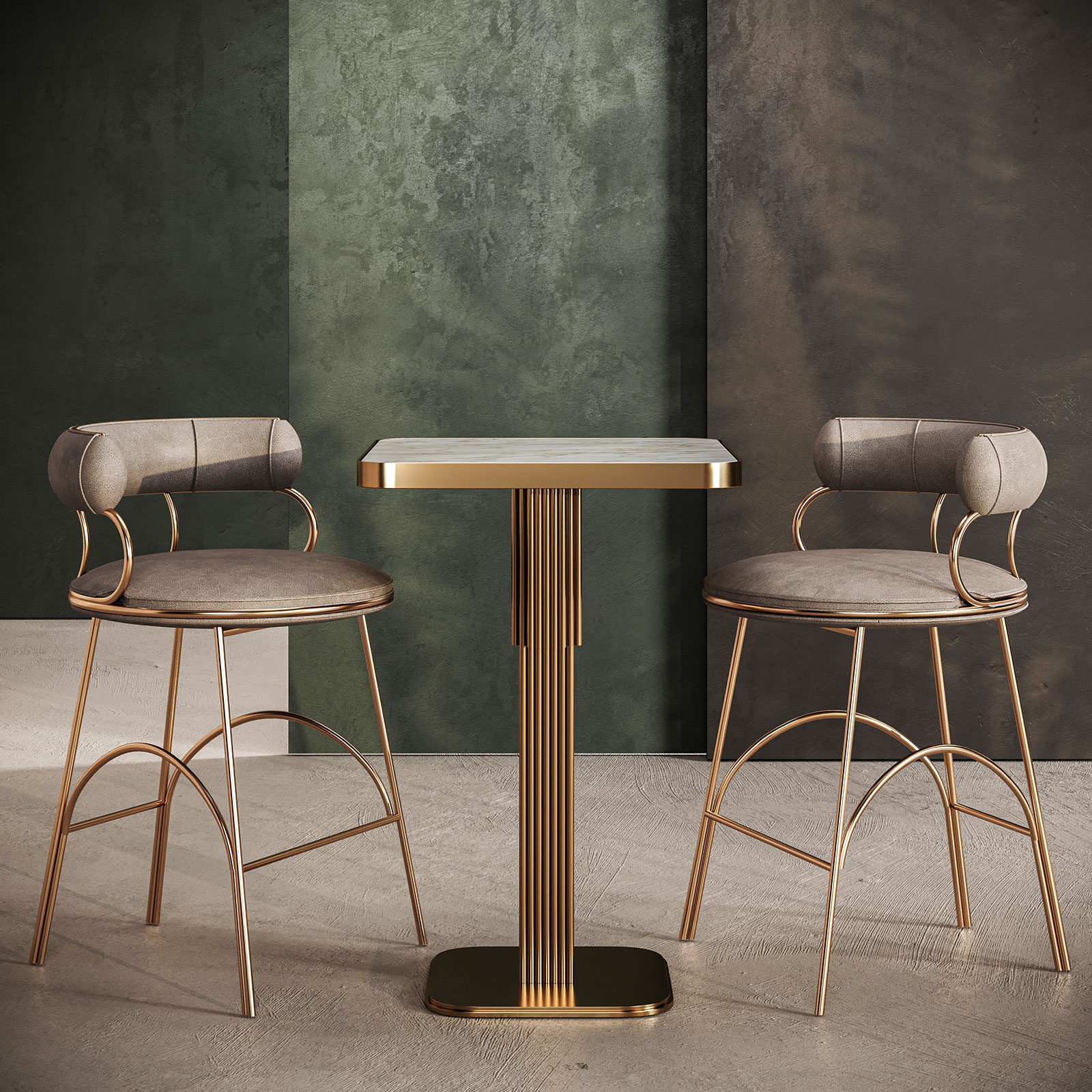 The Staten Bar Table opulent yet versatile does this tall table sustainable for commercial interiors, such as restaurants and bars.