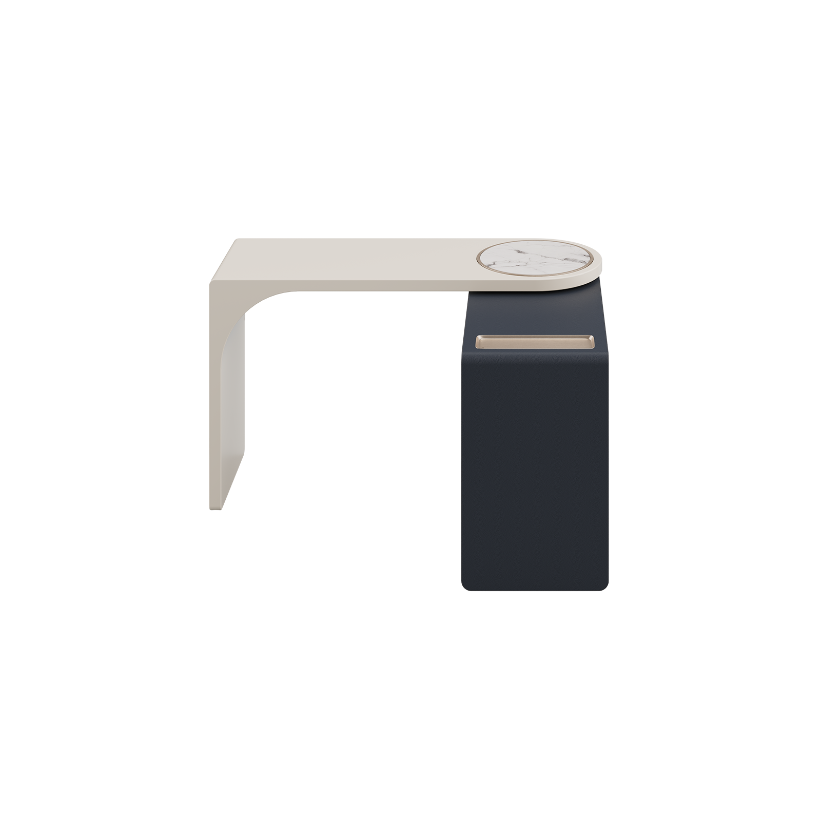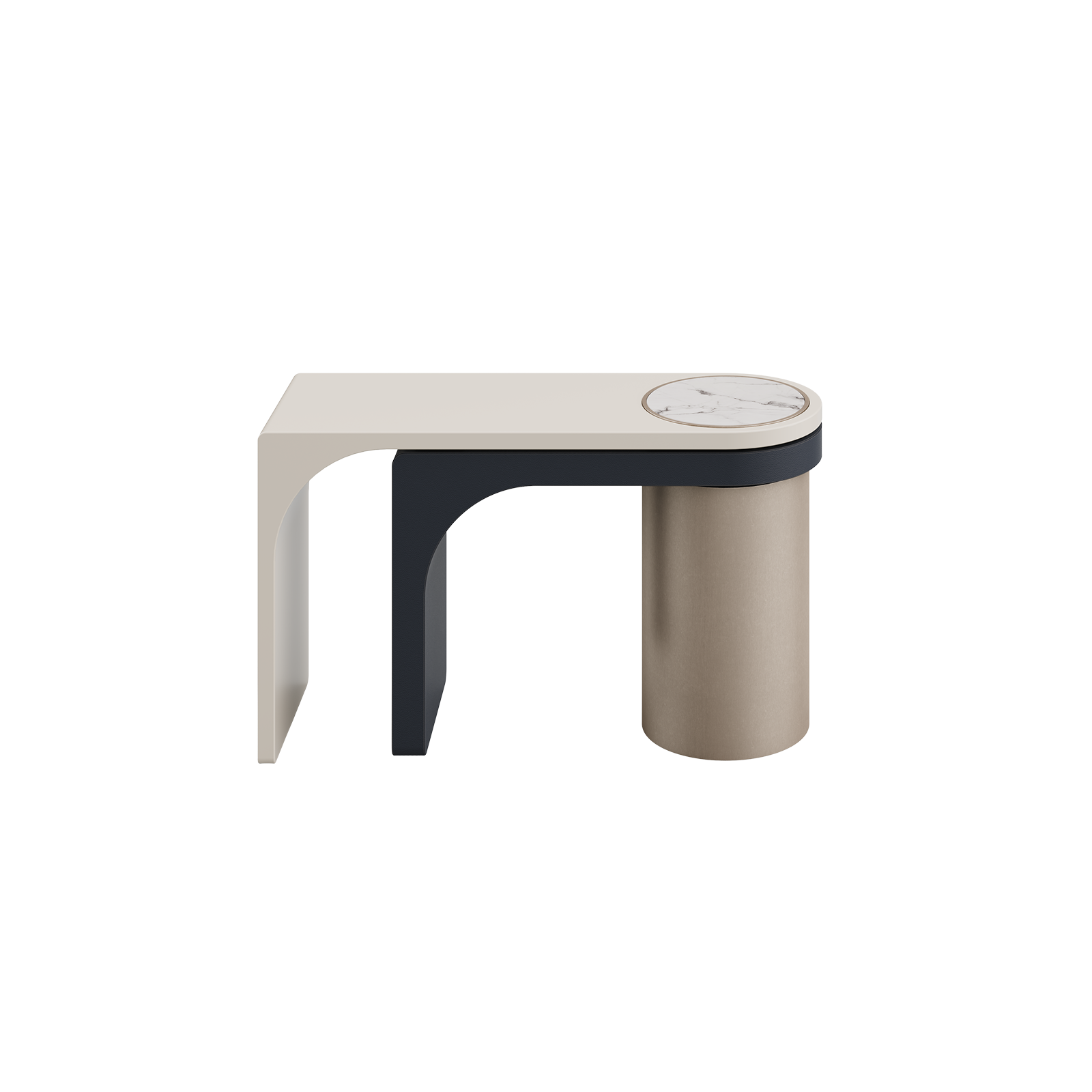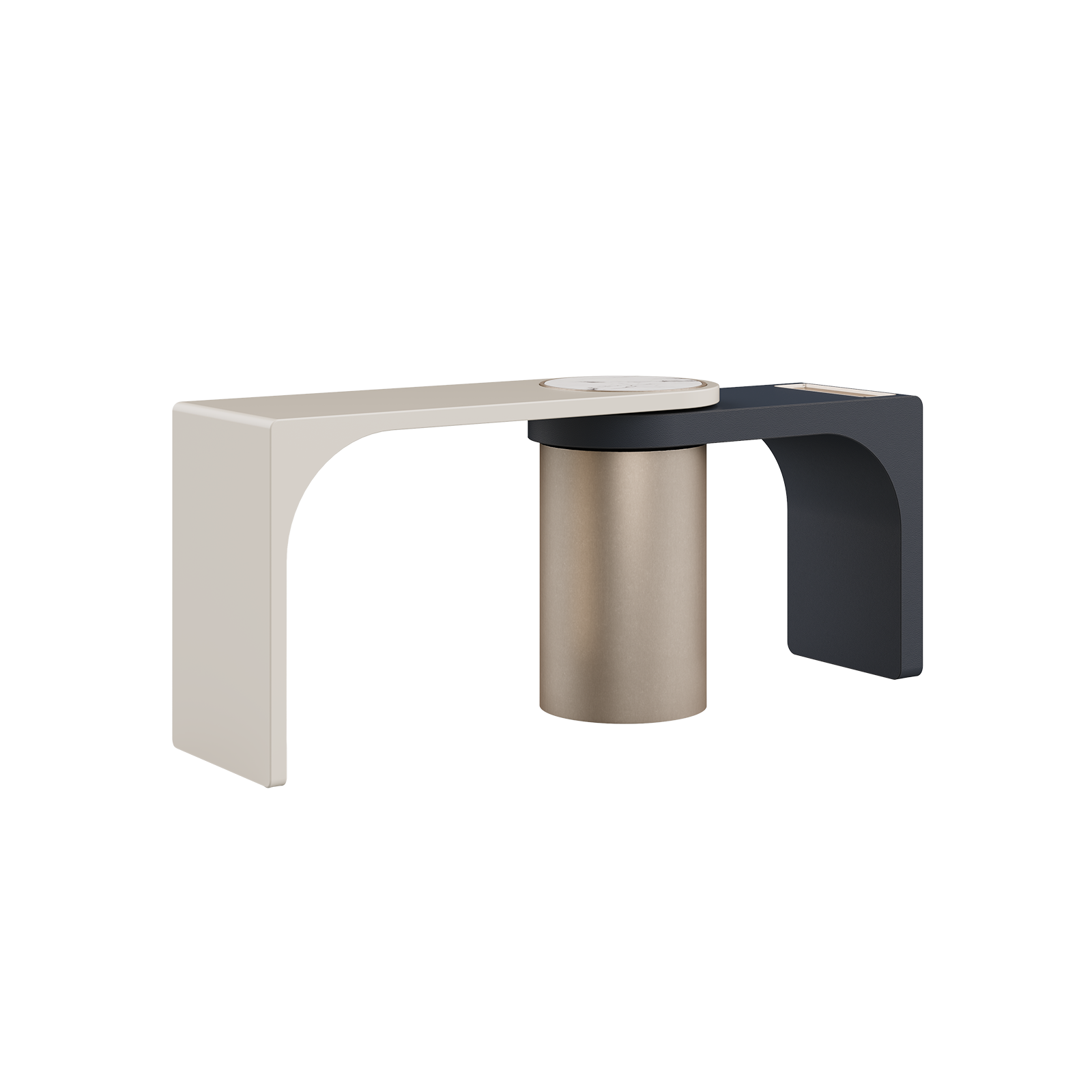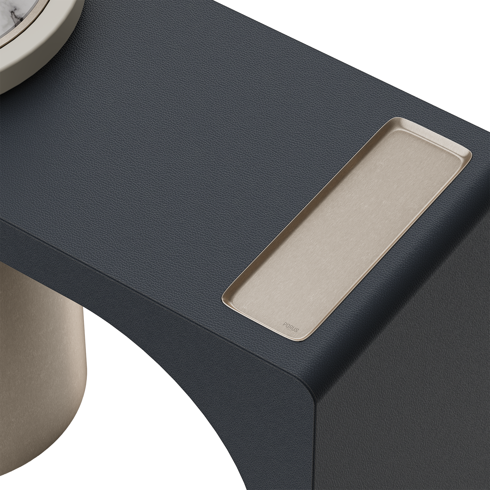 Transforming sights into deluxe living protagonists, Porus Studio designers conceived the Florida Console.The Florida Console structure is made of lacquered and leather-covered wood and is embellished with marble and brushed champagne stainless steel details.