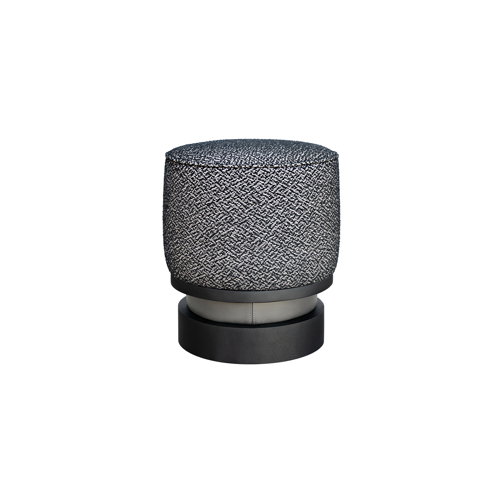 Wyo Stool is an opulent, yet elegant cylindrical stool in upholstered in bouclé weave and full grain leather with its base in black stained ashwood. Wyo Stool will deliver a luxury statement in any contemporary home décor.